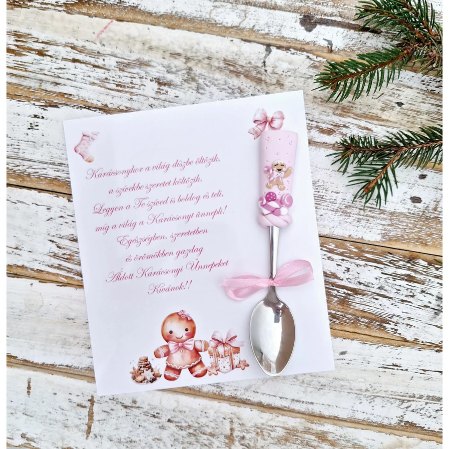 A kártyára masnival van rögzítve a kanál és fóliába van csomagolva
