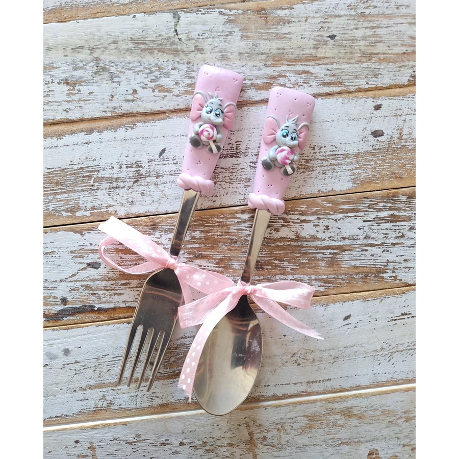 Süthető gyurmával díszített gyerek evőeszköz 17cm kanál és/vagy villa. Ha mind a kettőt szeretnéd kérlek tegyél a kosárba 1 db villát és 1 db kanalat is.