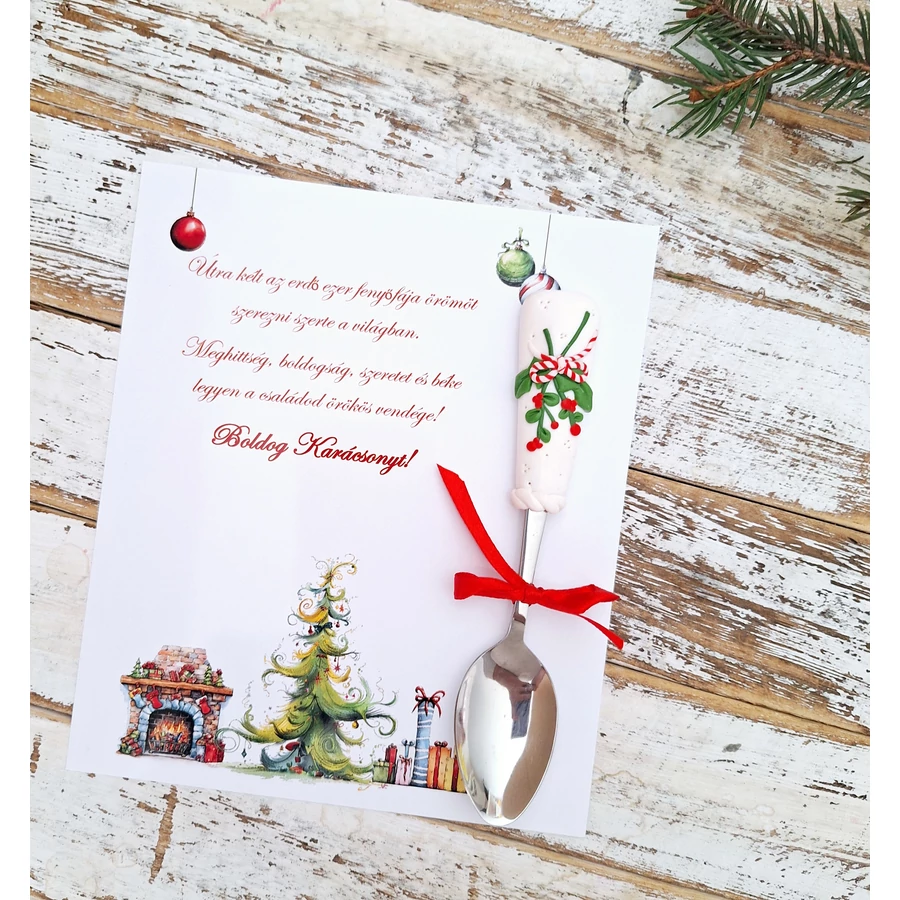 A kártyára masnival van rögzítve a kanál és fóliába van csomagolva