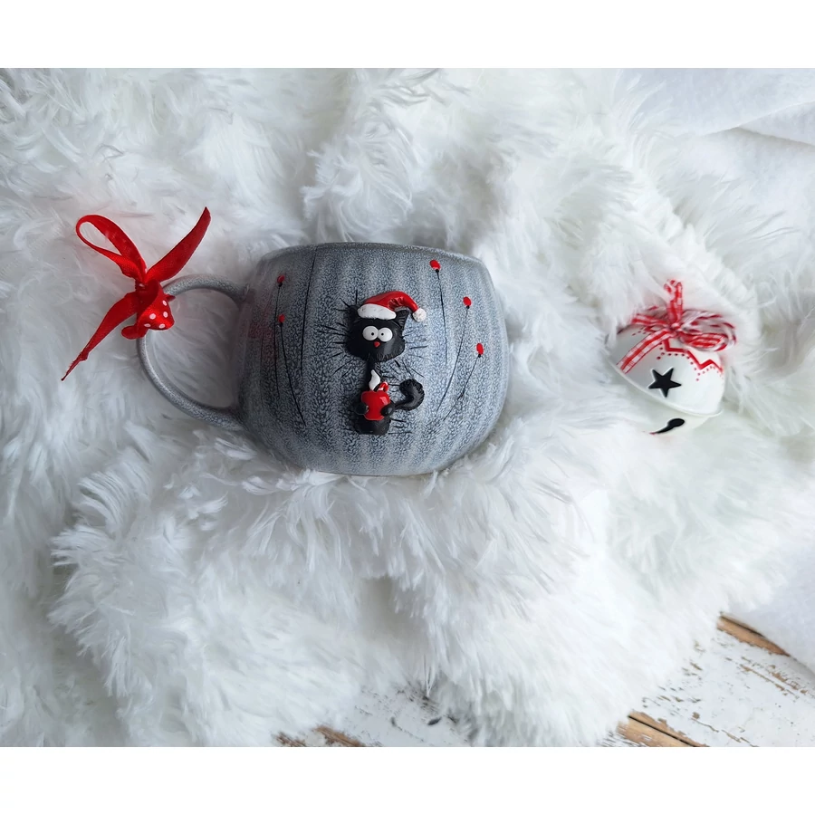 Süthető gyurmával díszített kerámia bögre.  Az ár csak a bögrét tartalmazza, a teáskanál külön megvásárolható.