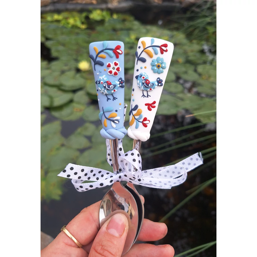 Süthető gyurmával díszített teáskanál.