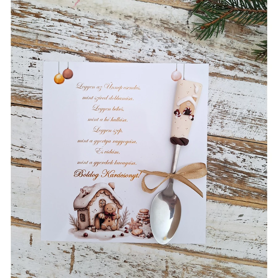A kártyára masnival van rögzítve a kanál és fóliába van csomagolva