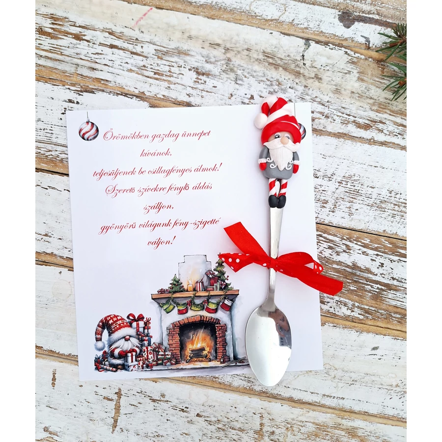 A kártyára masnival van rögzítve a kanál és fóliába van csomagolva