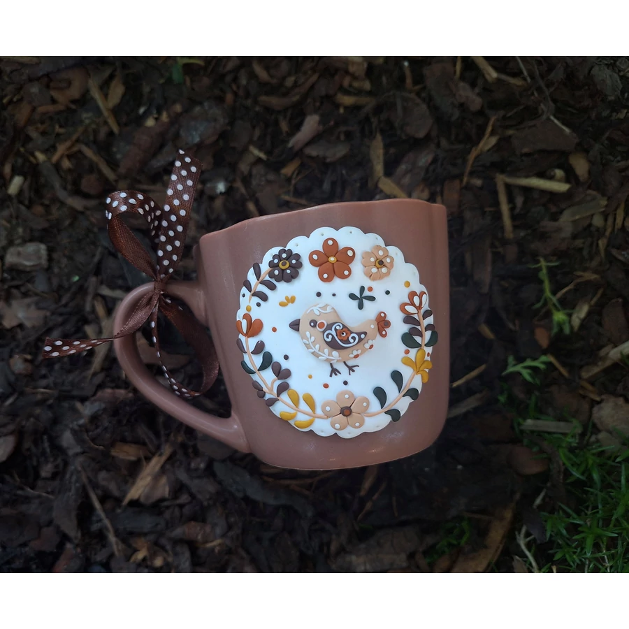 Süthető gyurmával díszített kerámia bögre. A belseje mintás (nem gyurma). Az ár csak a bögrét tartalmazza.