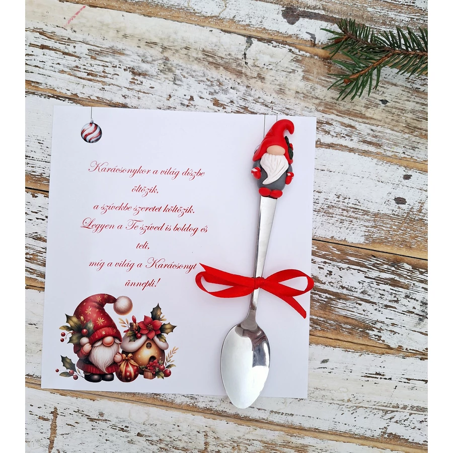 A kártyára masnival van rögzítve a kanál és fóliába van csomagolva