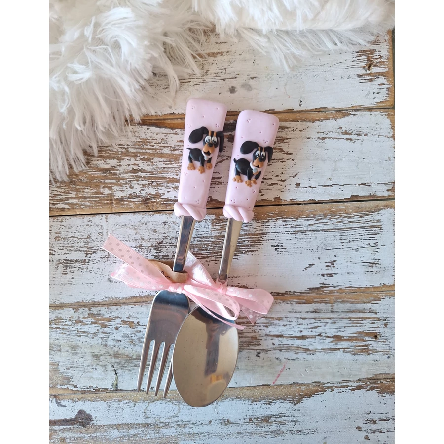 Süthető gyurmával díszített gyerek evőeszköz 17cm kanál és/vagy villa. Ha mind a kettőt szeretnéd kérlek tegyél a kosárba 1 db villát és 1 db kanalat is.