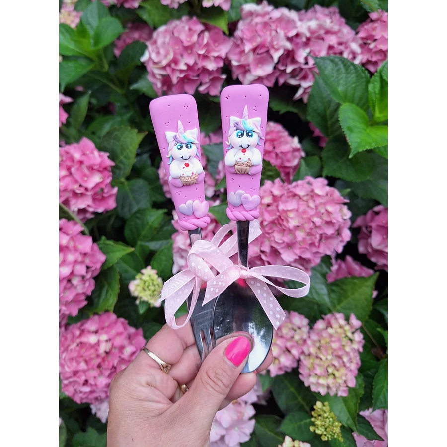 Süthető gyurmával díszített gyerek evőeszköz 17cm kanál és/vagy villa
