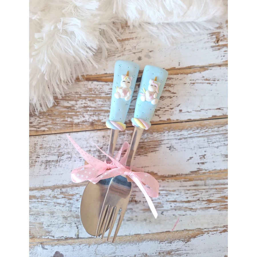 Süthető gyurmával díszített gyerek evőeszköz 17cm kanál és/vagy villa. Ha mind a kettőt szeretnéd kérlek tegyél a kosárba 1 db villát és 1 db kanalat is.