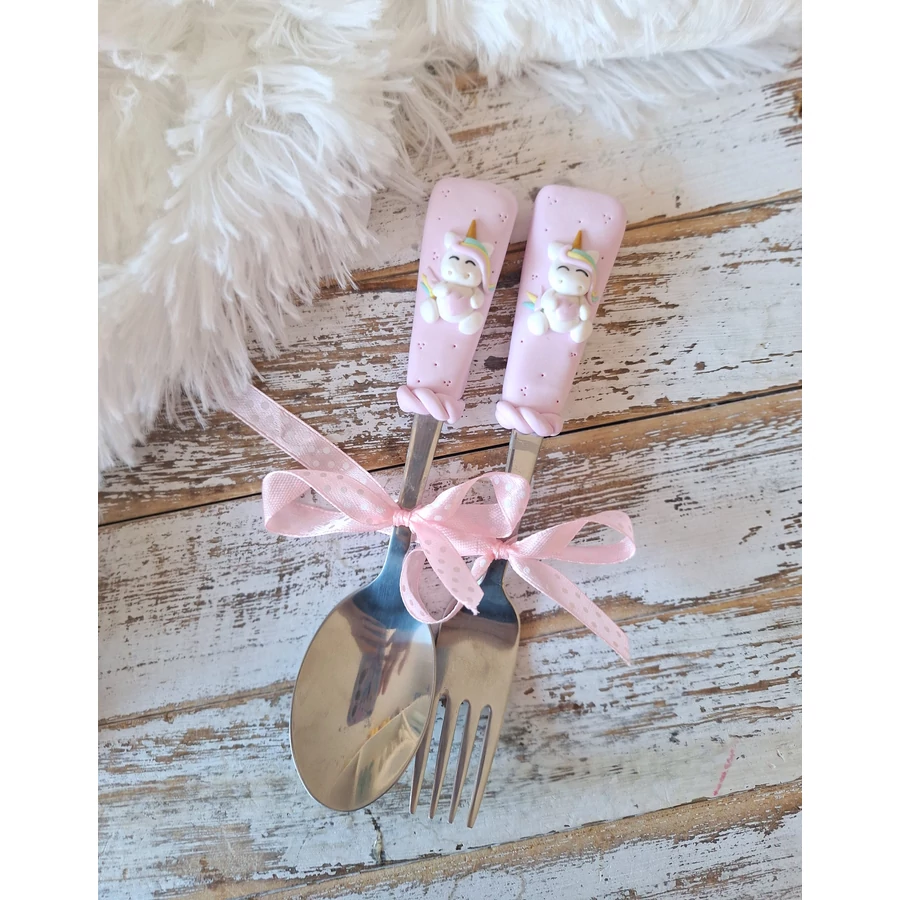 Süthető gyurmával díszített gyerek evőeszköz 17cm kanál és/vagy villa. Ha mind a kettőt szeretnéd kérlek tegyél a kosárba 1 db villát és 1 db kanalat is.