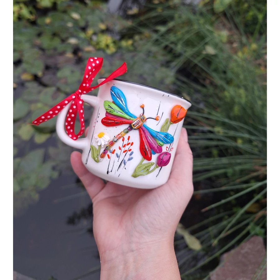 Süthető gyurmával díszített kerámia bögre. Az ár csak a bögrét tartalmazza.
